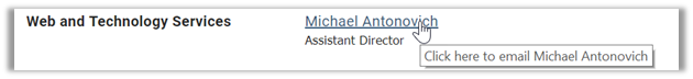 Now when the page is Published and a user hovers over the e-mail hyperlink, the tooltip appears either above or below the link text as shown in this figure.
