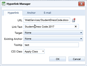 The solution could be as simple as understanding the difference between a document name and its title. A document name is the physical string of characters that define the name of the document in the file manager and it is the string of characters used to create links. On the other hand, the document title is a ‘user-friendly’ name for the document that is displayed to the user. It may or may not be stored with the document/file. What does that mean? Simply that if you keep the document name the same from one year to the next by NOT including the year in the name, the file is only stored once and new versions will overwrite the old versions (assuming you check the overwrite option when uploading the document). However, you can optionally insert the year in the ‘title’ of the document in the hyperlink to assure the user that the document has been updated for the current year.