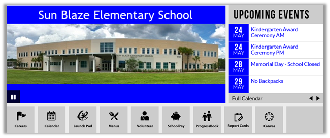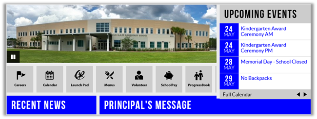 The following image shows a school banner in which the uploaded banner image was sized as: 640 x 178.