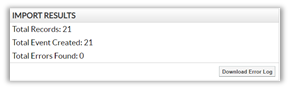 In this case, you will want to click the Download Error Log and open it in Excel to see which event(s) did not load.