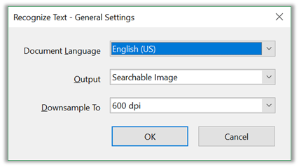 The Fix option displays a dialog box with three configuration questions. For the first pass I will leave the Output as a Searchable Image. Another option you might choose for output is Editable Text and Images. This provides some access to images, but neither method is as accurate as working with the source document for the PDF and then recreating the PDF.