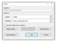 Enter an appropriate Table Caption after the text ‘Table 1:’ and click OK. Is a table caption necessary? I have seen mixed reports. However, in a large document with multiple tables, have table captions makes it easy to refer to different tables at different points within the document and will make it easier even for the visually impaired person to follow along.