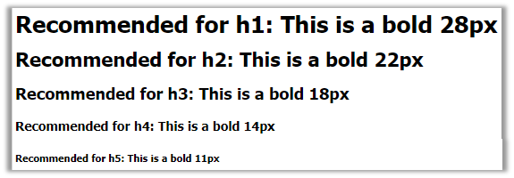 <p><span style=”font-size: 11px;”><strong>Recommended for h5: This is a bold 11px</strong></span> </p>